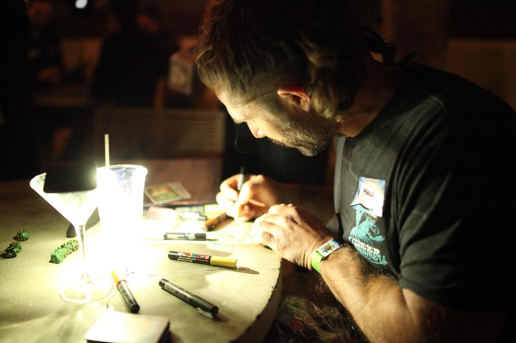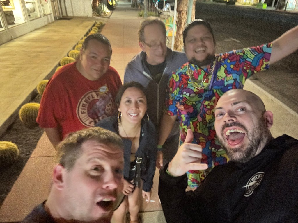 Fast forward past two failed bar experiences that were not ready for our group, and we walked a mile and a half back to the hotel, With Drew Tucker, who; was slightly buzzed after stealing Brian Urbano’s drink unknowingly. We ended up hanging out in the hotel’s front lobby bar after a quick stop at the liquor store down the street because you know Margaritaville’s bar closed at 11 pm on a Saturday… 5 o’clock somewhere, my ass Jimmy Buffet you are a liar! Half the group played the Desert Twisters Old School Trivia, and the rest of us kept on drinking. I picked Drew Tucker’s brain on Dandân as it is my favorite art He has done, and I do this with every artist I come across. I stumbled back to my room around 130 am and called it a night.