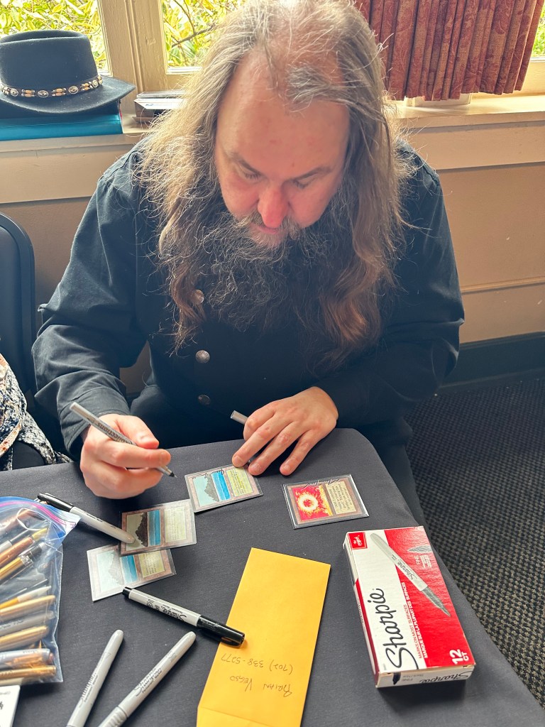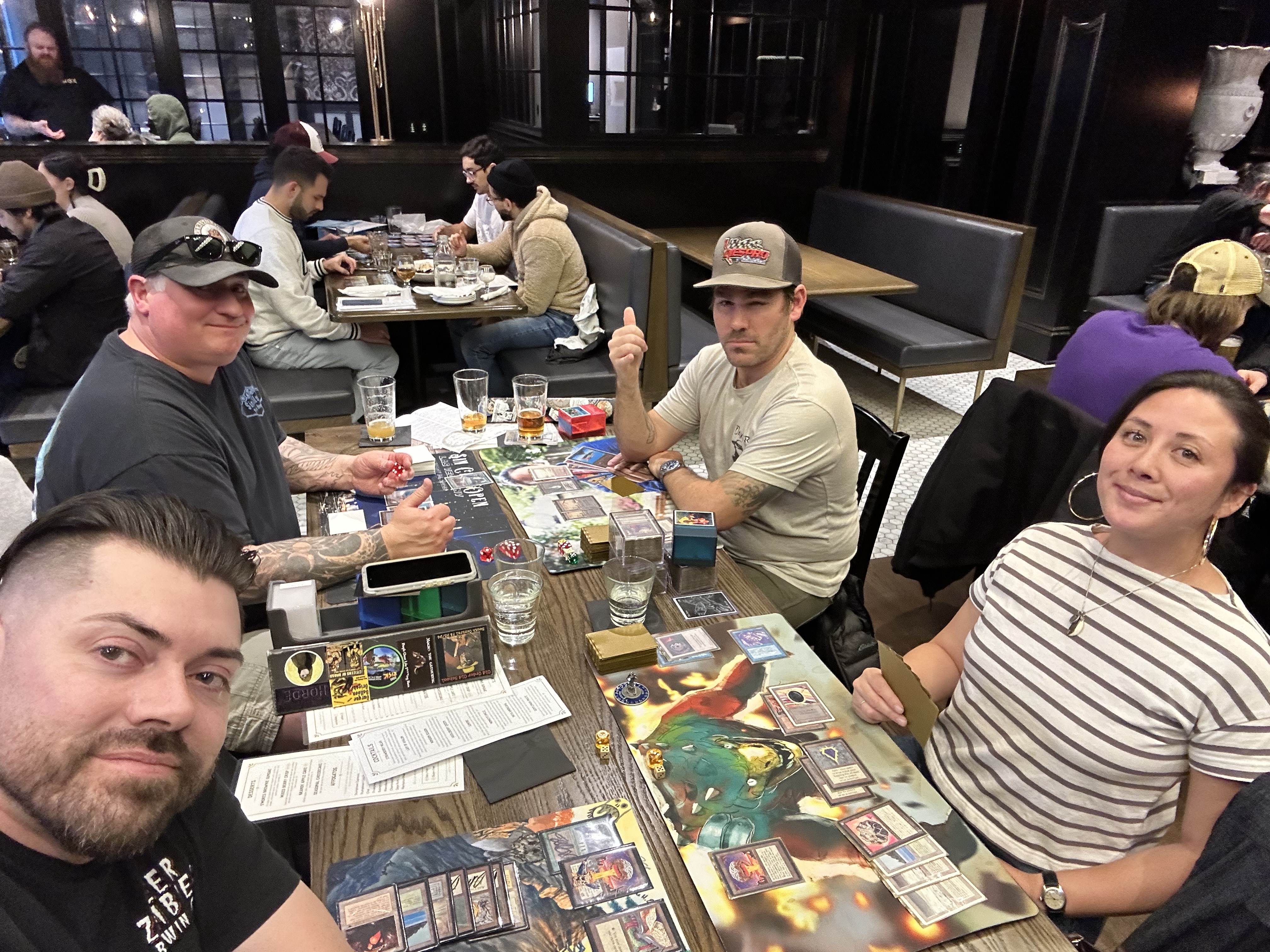 We arrived we about 15 minutes until the suggested start time, signed in, and I b lined it to Jesper’s booth to get a few signatures and alters started before the event started. I was on Power Monolith and my first opponent was none other than the man himself of This Old Deck podcast, Eric Martin. Eric saw me and said, “I came halfway across the country to play you again, we just played each other a few weeks ago” We laughed and began to tap the cardboard sideways. Eric was on GW Fungusaur ping. I fought through round 1 digging and digging to finally assemble the combo and smoke him out for 10 trillion damage… yes you read that right, 10 Triiiiillion damage (insert Doctor Evil) Eric beat me in rounds 2 and 3, and I drew 6 blue spells one after another with no land to cast anything with but my Mox Ruby and tropical island on the battlefield. I ended the day 3-2 in a happy 19th place.