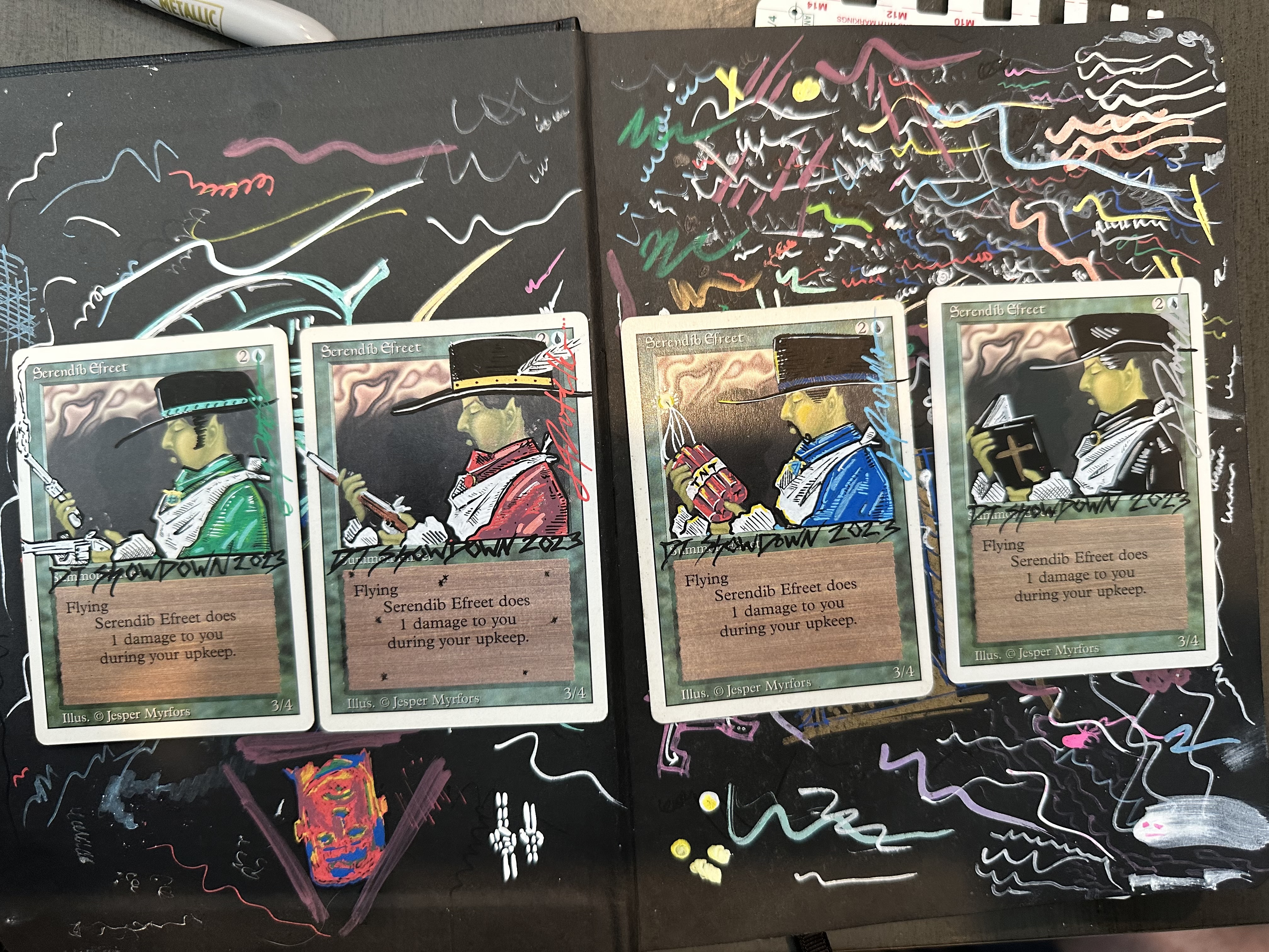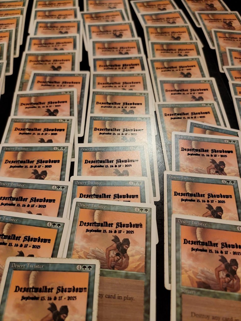 Following the last round is one of the most anticipated parts of Old School events, the charity raffle. And man, did the Desert Twisters have some good stuff! To name a few, jewelry donated by Rock Love, some of the best-altered cards I’ve seen in a charity raffle (and I’m not just saying that because I did some.), Bullet Counters from Brian Vegso that he put all of his raffle tickets in to win back haha, and a fully proxied choose you own adventure style deck designed and donated by Jaco, and won by Watte (which you purchases serialized versions of these cards to try and win the deck, oh and of course Brian Urbano got the 001 Black Lotus, the luck this dude has is unreal but we still love him).