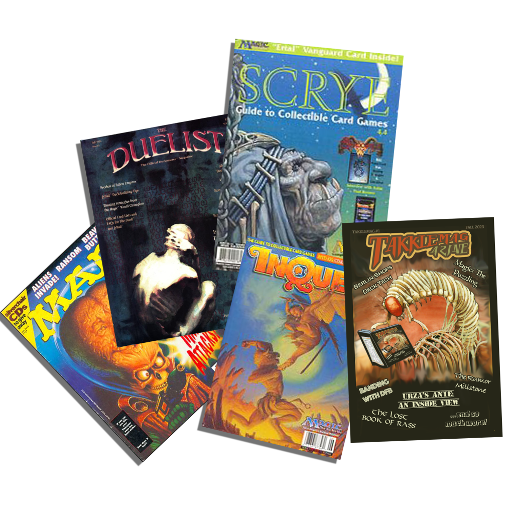 Remember a time not so long ago when we didn’t have all the information we wanted about all things Magic: The Gathering at our fingertips? Shawn Sullivan remembered, and it’s pure 90s nostalgia. When I was handed a Takklemag-azine at Chalice V and flipped through a few pages, I knew I was looking at something special. Takklemag brought me back to the days of going to Barnes and Noble bookstore with my dad to pick up a copy of Inquest, Scrye, The Duelist, and MAD magazine as a kid. Takklemag-Azine is the perfect balance of ads, gossip, deck primers, fictional fantasy stories, collections, puzzles, and more.