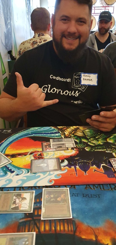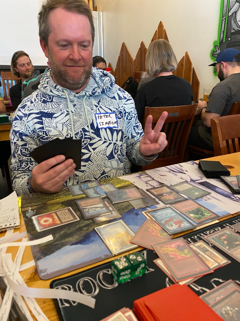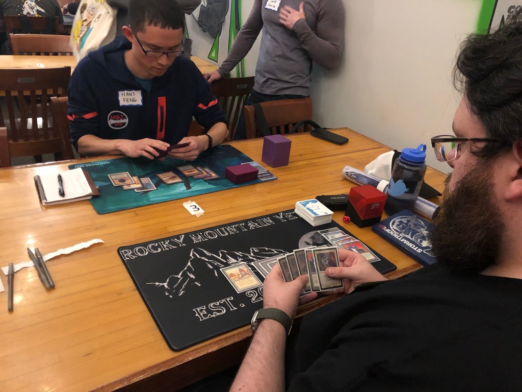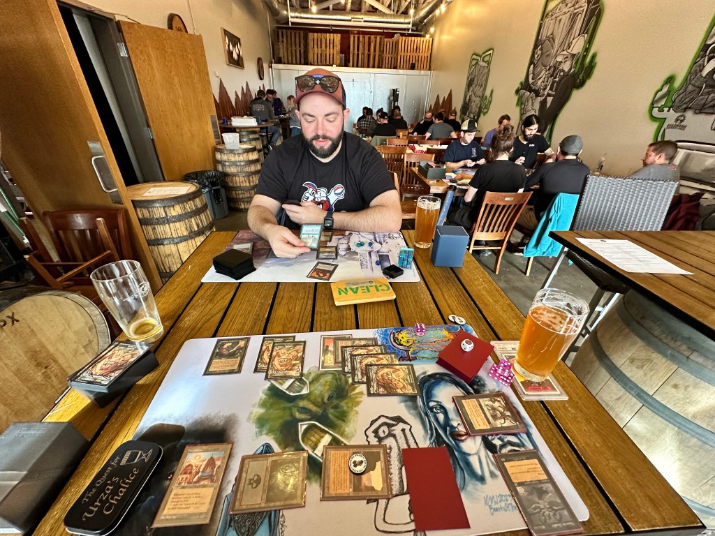 The following morning, Vegso woke up early and drove Urbano back to the airport, and I slept in until about 0900. I found a Dutch Bros coffee, and we went to Casa Bonita to check the legendary landmark from South Park season 7 episode 11. It was closed, but I wanted to get a few pictures anyway. I approached the front and noticed it was roped off like a nightclub. As I ducked underneath one of the ropes to get more pictures, an armed security guard busted through the front doors, yelling, “Get back behind the barrier!” I noticed two more security personnel standing inside the front doors. I de-escalated the situation, and the guard and I chatted for a few minutes about the remodel and how there is currently over a million-person waitlist to get inside, and it’s invitational only. This was different from the Casa Bonita I visited in 2012, which smelled like mold and had the dining experience of South Park Elementary Cafeteria. I wish the security guard would have yelled, “Hey, Respect my Authority!” just once. We still had time before the Sunday Premodern tournament started, so we found a local LGS and played more games of Sorcery before departing to Green Mountain Brewing again.