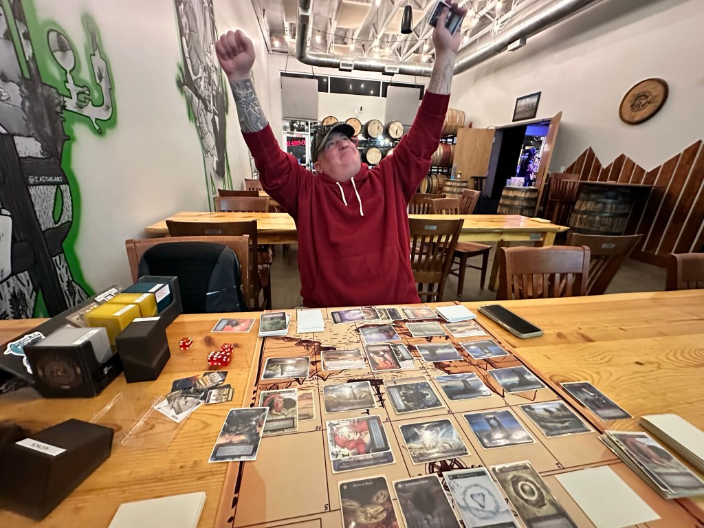 After lunch, we returned to the brewery and jammed games of Sorcery until the Sunday event was over. Like two people from Las Vegas, we were the last ones at the bar until we finished our games. We headed back to the airport, where we did get out on an earlier flight to Vegas due to a plane being delayed, and did not have to wait at the airport for an additional three hours for our original flight.