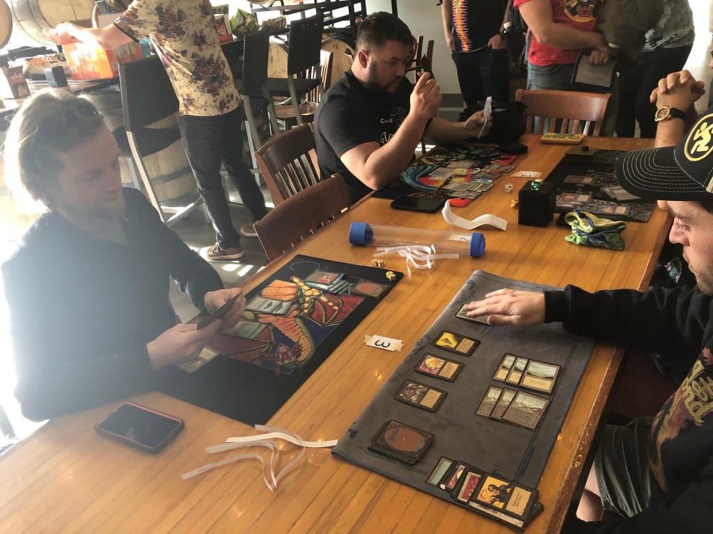 I ended up in a top 8 seat for the cut to the top 4. I lost 2-1 to Don Perrien; having 12 counters post-side boarding was too much to battle through to attempt my combo. Before the top 4 battled it out, Jared and I ran to the Domino’s Pizza next door and grabbed about ten pizzas for dinner. You can tell Jared has been taking notes while attending events and is perfecting being a Tournament Organizer. We closed the Brewery, and Urbano, Vegso, and I returned to our hotel. Brian and Brian stayed up playing games of Sorcery in the lobby, and I headed back to the room for an “early” night as I had been up since 0230 that day.