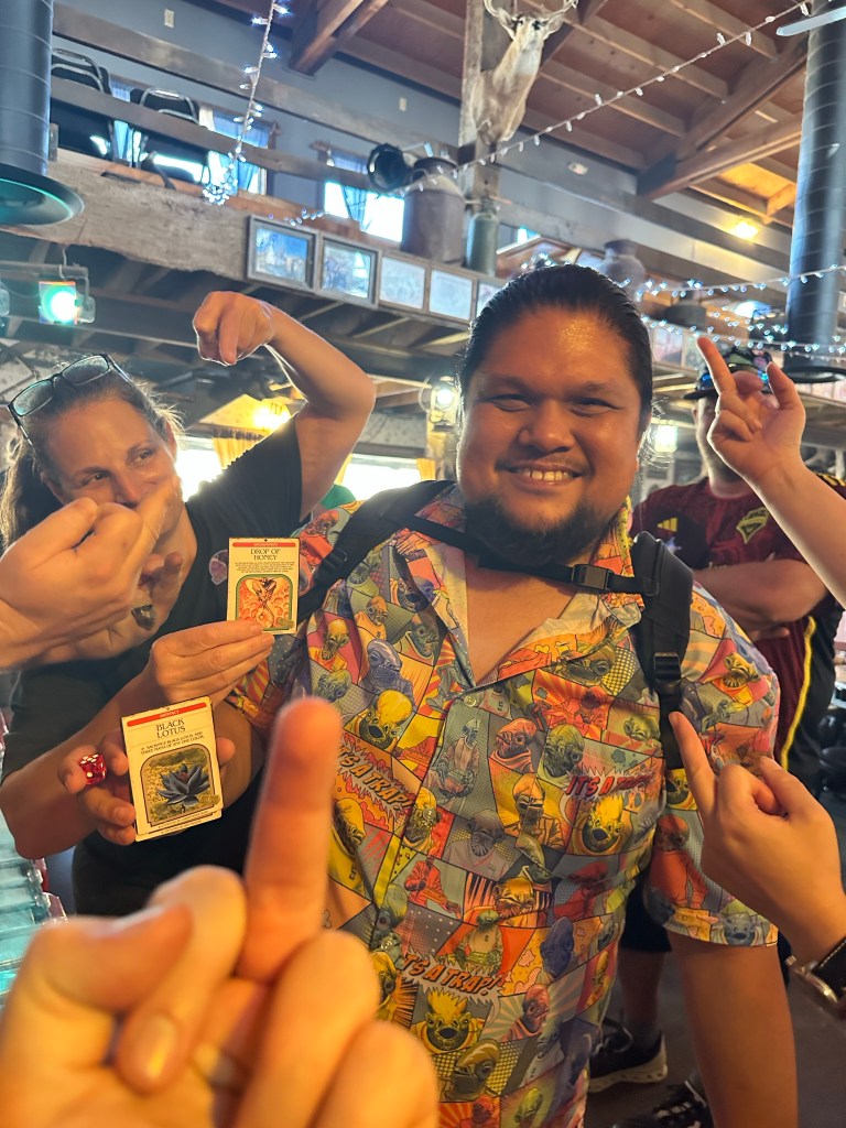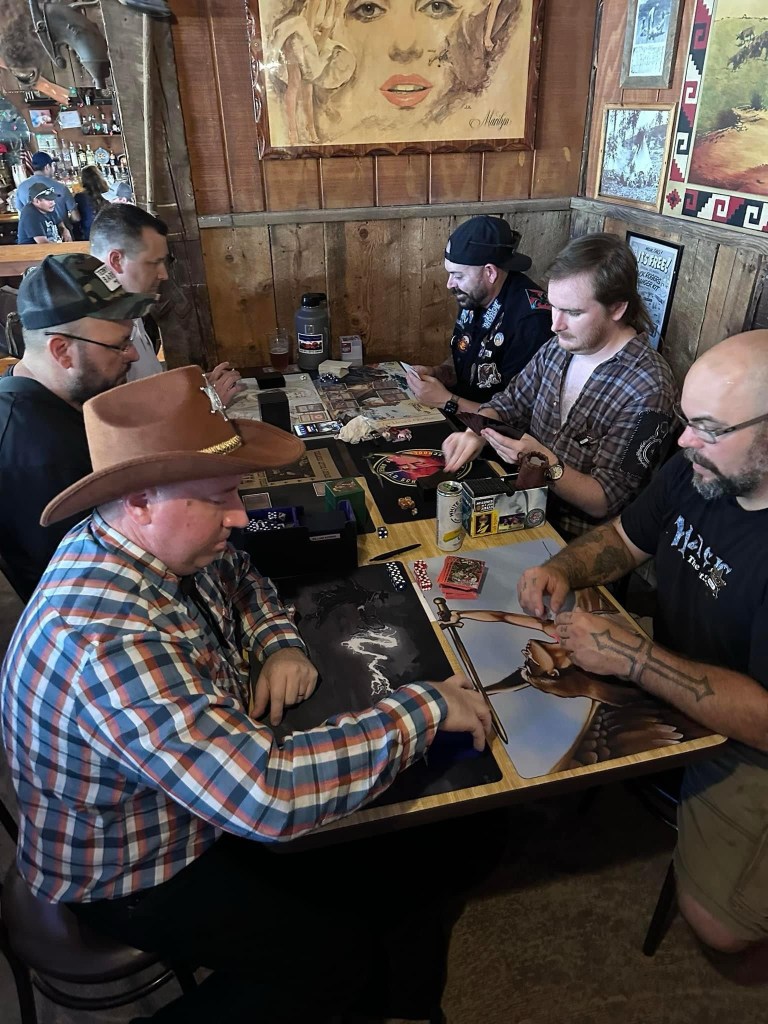 This next event was the one that started it all for this website, The SoCal Deep Spawner’s “THE RISK 2023”! For the last couple of years, this event has been held at Margarita Ville in Palm Springs, California. Chris and Denni Peppin do an outstanding job at making this a family-orientated event and making your spouses feel welcomed and not just a “plus one.” The event space used for the Risk is bigger than some SCG events I have attended in Vegas. We had a private bartender all day who did an excellent job with those heavy-handed pours, and the food catered was on par with a good wedding. Drew Tucker was the artist at this event, and while I met many artists at the Old School event, this was the first event that the artist went out and partied with us all night. There were multiple family meals where everyone got together and got to know each other’s better half and enjoy the intimate setting. Because of this event’s inclusion for your family, The Risk 2023 is awarded the “Family Banding Award.”