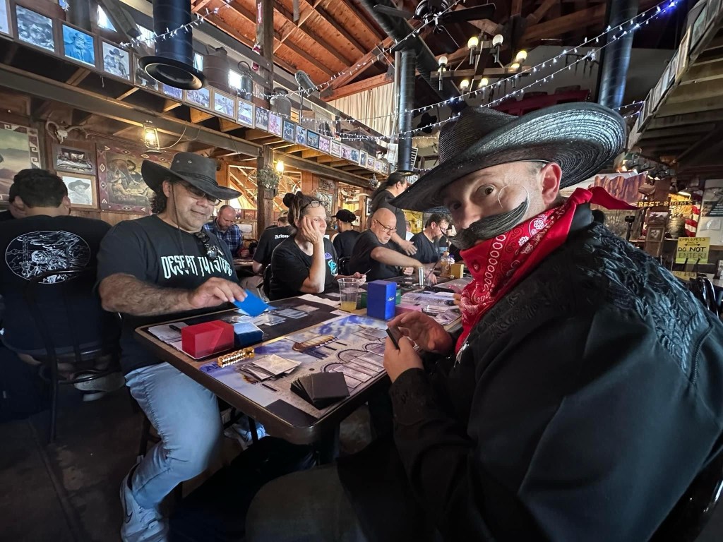 Desert Twisters could finally host the Showdown after it had to be postponed to 2020 due to COVID-19. The Showdown was held at the Mammoth Steakhouse in the Goldfield Ghost Town outside Mesa, AZ. It was a blistering 100-plus degrees outside, and the venue had no working air-conditioning besides ceiling fans. On most MTG occasions, this would be a no-go, but due to the event’s theme, it felt necessary and authentic. Like Ragnarök, the event leaned heavily on its theme, and like Ragnarök, it was done very well (the comparison comes into play soon). Each round, you earned bullet counters for resolving orb flips on selected cards with a weekend erratum. You could also compete for a one-time cash-in bounty each round as well. Old School events aren’t easy to plan; I know as I assist with our club planning, but a themed event is entirely different. Due to the deep dive into this theme from location, outfits, unique cards, fake money, and even a genuine, almost bar fight, I award the Desert Twisters the “2023 Braingyser award.” for the most creative event. ECT, you guys were a close runner-up!