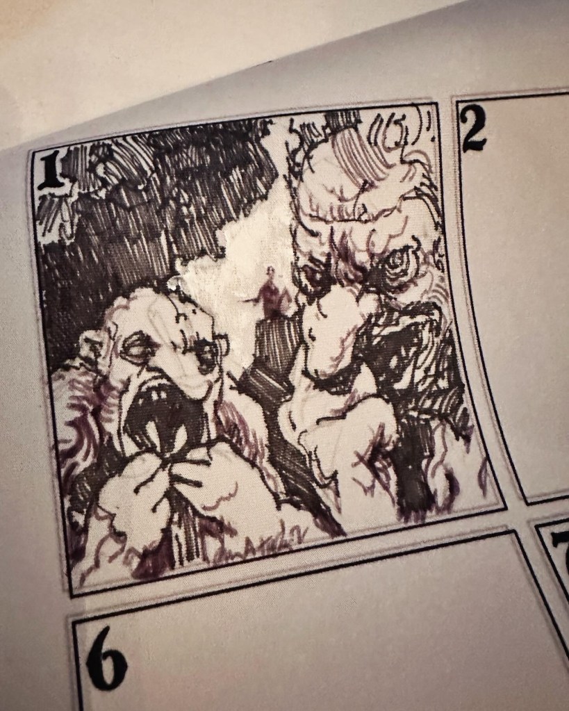 Gazing outward, he could see silhouettes forming in the fog across the field as the sound of the drums was now palpable. The soldier turned and shouted below, “Ready yourselves, men, prepare the cannons and–” But before he could finish, the deafening sound of a war trumpet blew. He snapped his gaze back to the now silent valley. It was so quiet; all he could hear was the sound of his warm breath against the cold morning air. The fog revealed two silhouettes: one, the size of a modern-day man in stature, and the second, a silhouette towering over the other in height and pure mass.