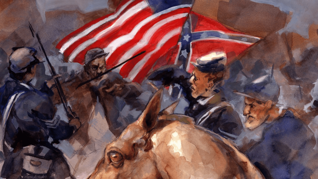 Peering over the crest of the hill from the safety of his cover, the Union Soldier could see the sun rising from the east, revealing a dark, cloudy sky overhead and a mist hanging in the air, creating a dense grey fog in the distant lower valley. It was so quiet that the only sound the soldier could hear was the grass crunching under the weight of his body as he crawled back down into his holding position to brief the platoon of his observations. “Nothing, absolutely nothing, but us out here. Looks like Confederates finally came to their right mind and called it quits, sir.” Briefing his superior. “Good, prepare the men to march east; let’s go get to your feet, soldiers!” A faint drum roll could be heard in the far-off fog of the valley below with the sound of heavy footsteps. The soldier hastefully crawled back to the top of the hill, looking out towards where the ever-growing drum roll was coming from.