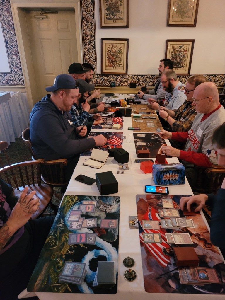 The following day, I decided to sleep in while Brain, Jared, and Pat went to get breakfast. I woke up about 45 minutes before registration began for Glorycon III and got ready, and we walked to the Dobbin House, about 10 minutes away. We were greeted by Mike Frantz at the door and checked in to the event. This being my first East Coast event, I didn’t know what to expect for the meta, so I built Power Monolith.