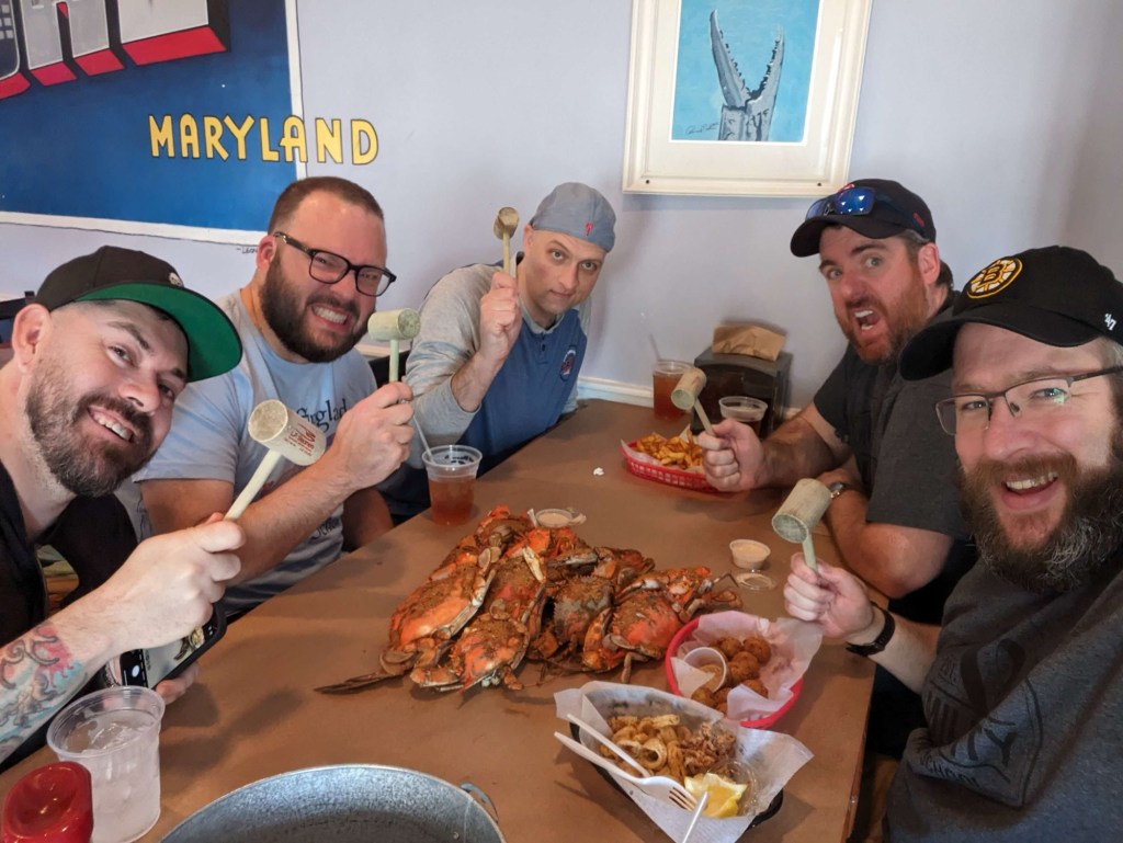 The following day, I met up with DFB, Shawn Sullivan, Jared Doucette, and Scott Bradley at LP Steamers for an afternoon of smashing crabs with little wooden hammers, talking about future events, and more Yuengling! I wondered if I would see Shawn at lunch or even the event this weekend. As his original flight had been canceled due to a structural integrity error found on a series of Boeing Max 9 planes: nothing major, just the possibility of the emergency exit door blowing off at 35,000 feet in a pressurized cabin, potentially sucking you out at 500 mph. Lucky Shawn made it after a night of flight switches and layovers. Unfortunately, Jacob Brothers didn’t make it. (Not because he’s dead due to being sucked out of an airlock like the Alien Queen, he couldn’t get a flight out with the short notice of cancelation at a reasonable price). Jacob, hopefully, I’ll see you soon. I still have Chalice V swag for you. The meal was great, the company was even better, and it was nice to put some faces with the names in person finally.
